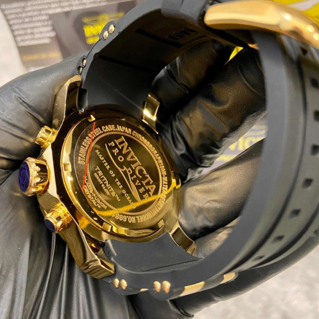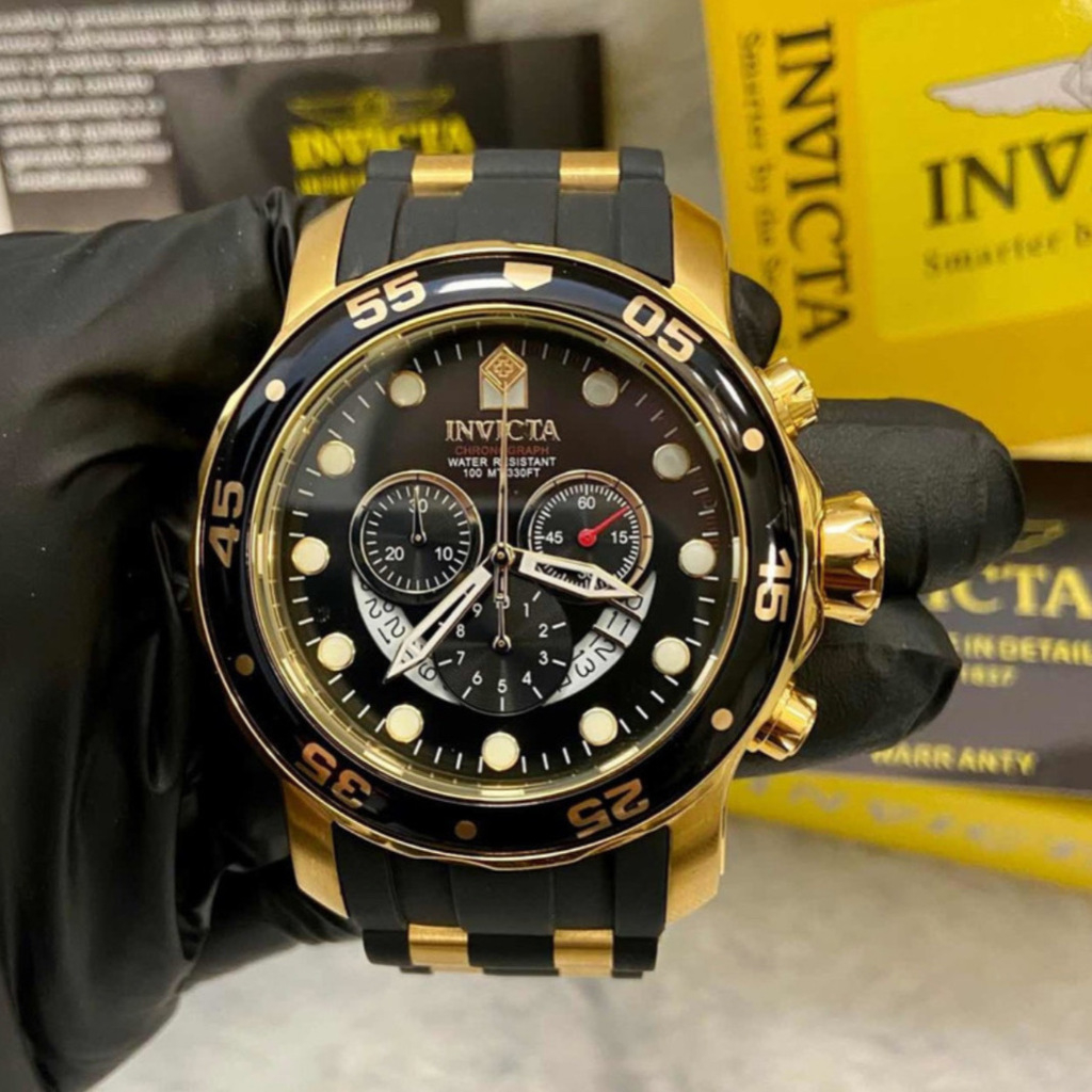 Enquanto muitas lojas oferecem réplicas ou produtos sem garantia, nós garantimos qualidade inigualável e total segurança na sua compra. Nosso estoque conta com relógios Invicta feitos em aço inoxidável 904L, resistente à ferrugem, banhados a ouro 18k, garantindo durabilidade e luxo em cada peça.