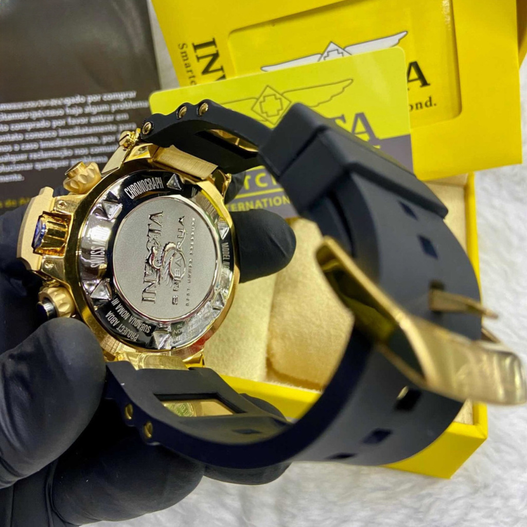 Enquanto muitas lojas oferecem réplicas ou produtos sem garantia, nós garantimos qualidade inigualável e total segurança na sua compra. Nosso estoque conta com relógios Invicta feitos em aço inoxidável 904L, resistente à ferrugem, banhados a ouro 18k, garantindo durabilidade e luxo em cada peça.