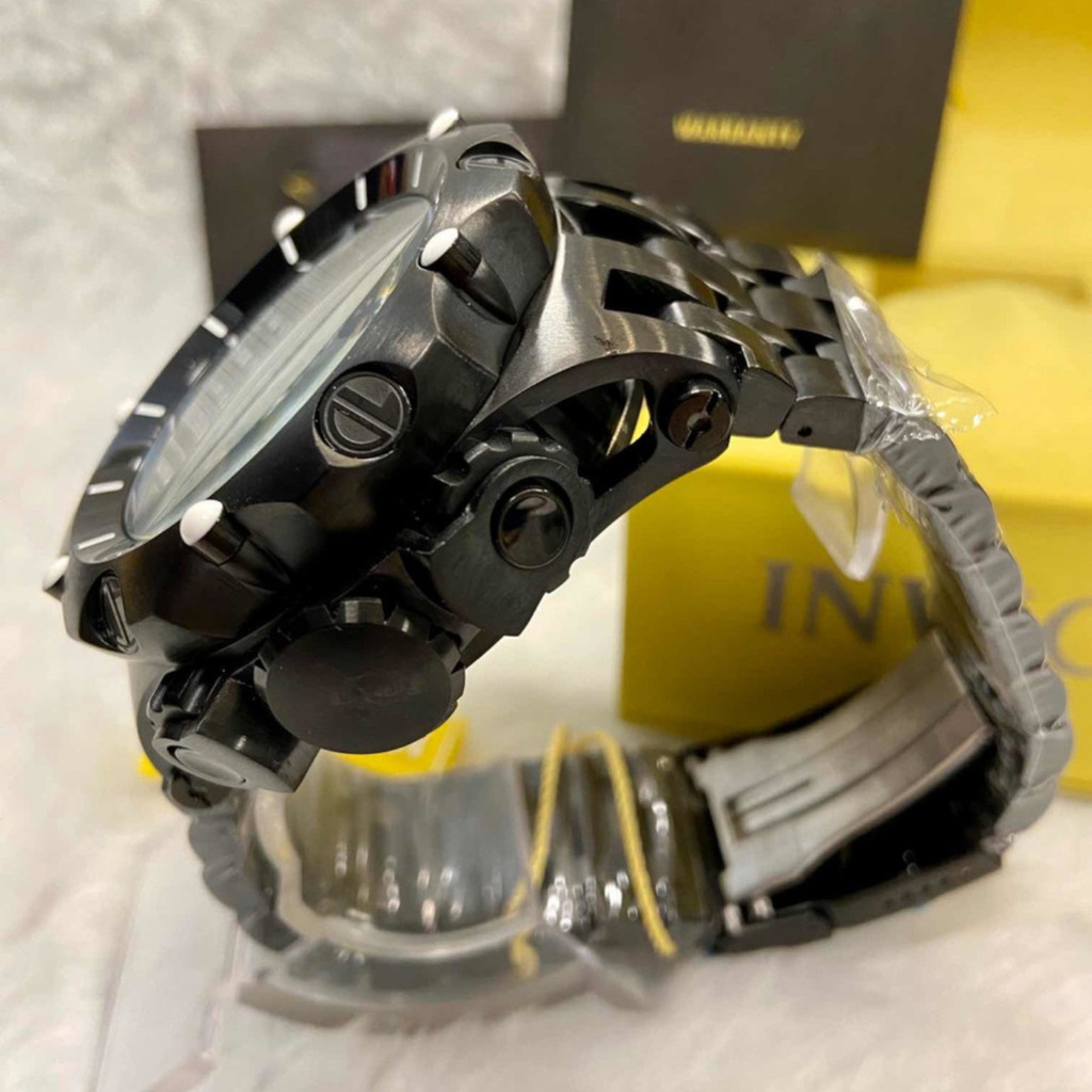 Enquanto muitas lojas oferecem réplicas ou produtos sem garantia, nós garantimos qualidade inigualável e total segurança na sua compra. Nosso estoque conta com relógios Invicta feitos em aço inoxidável 904L, resistente à ferrugem, banhados a ouro 18k, garantindo durabilidade e luxo em cada peça.
